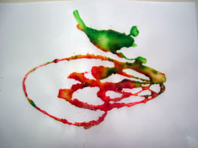 Material: areia fina, anilina, cola